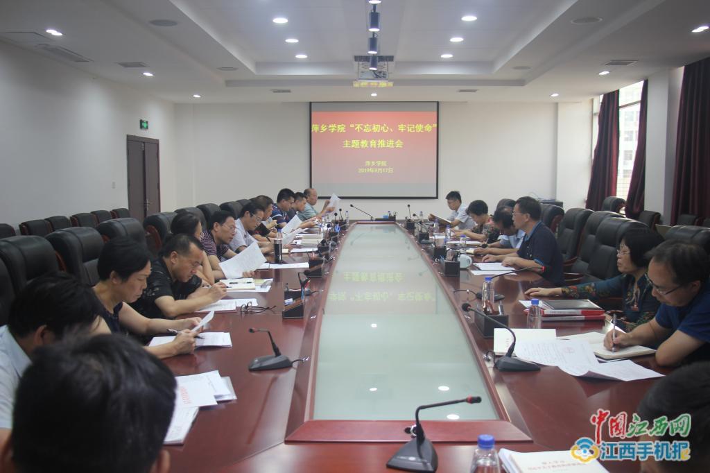 中国江西网/萍乡头条客户端讯 尹杰报道:9月17日,萍乡学院在至善楼第一会议室召开“不忘初心、牢记使命”主题教育推进会。党委副书记蔡宝琦主持会议并讲话,机关党委、各党总支书记,校“不忘初心、牢记使命”主题教育指导组成员参加会议。