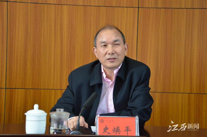 ▲党委副书记、校长史焕平传达会议精神