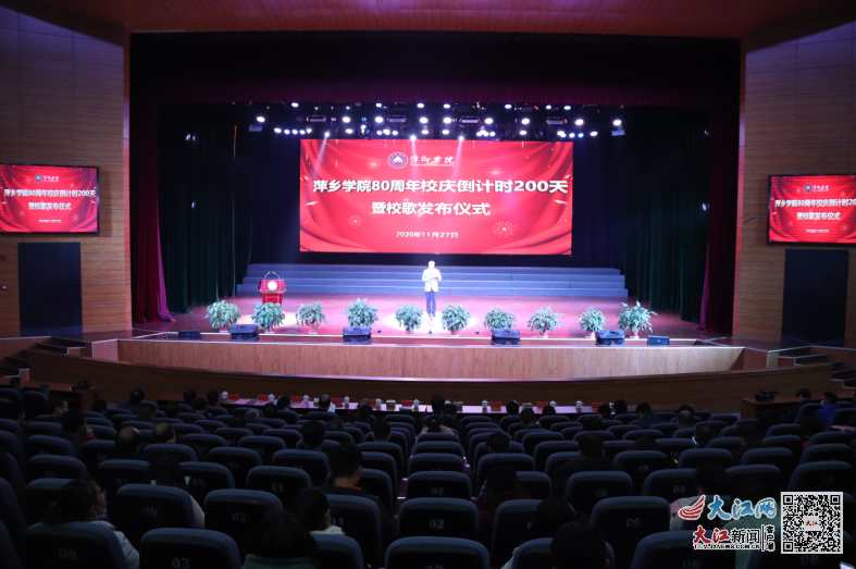 大江网/萍乡头条客户端讯 记者邓敏报道:“厚德至善,励学笃行。格物致知成才之梦,描绘青春风景……”11月27日下午,萍乡学院音乐厅内歌声悠扬、热闹非凡,该校80周年校庆倒计时200天暨校歌发布仪式在此举行。校党委书记陈金印出席仪式并致辞,校党委副书记、校长史焕平等领导出席仪式。仪式由校党委副书记蔡宝琦主持。