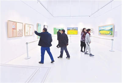 村民陈云发(右一)跟张佰桥学习油画后,创作出20多幅作品。