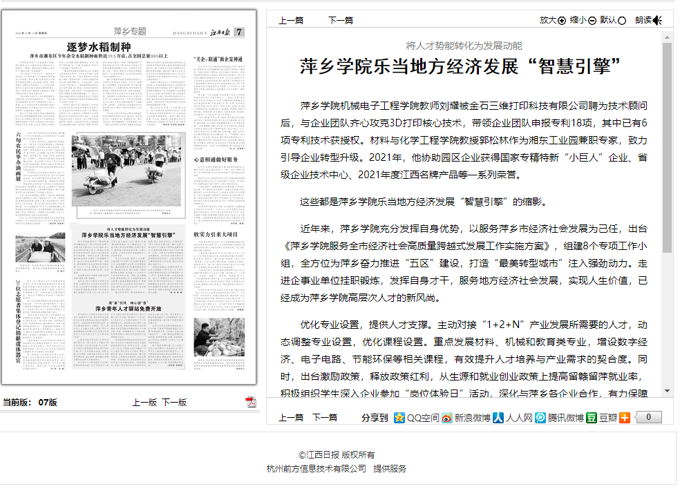 下一条:将人才势能转化为发展动能萍乡学院乐当地方经济发展“智慧引擎”