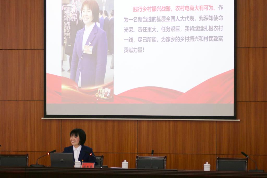 全国人大代表谭新萍以现场第一视角、切身感受,围绕参加大会各项议程、审议政府工作报告、全国人大常委会工作报告等内容分享了履职体会,传达了习近平总书记在全国两会期间的重要讲话精神和全国两会精神。