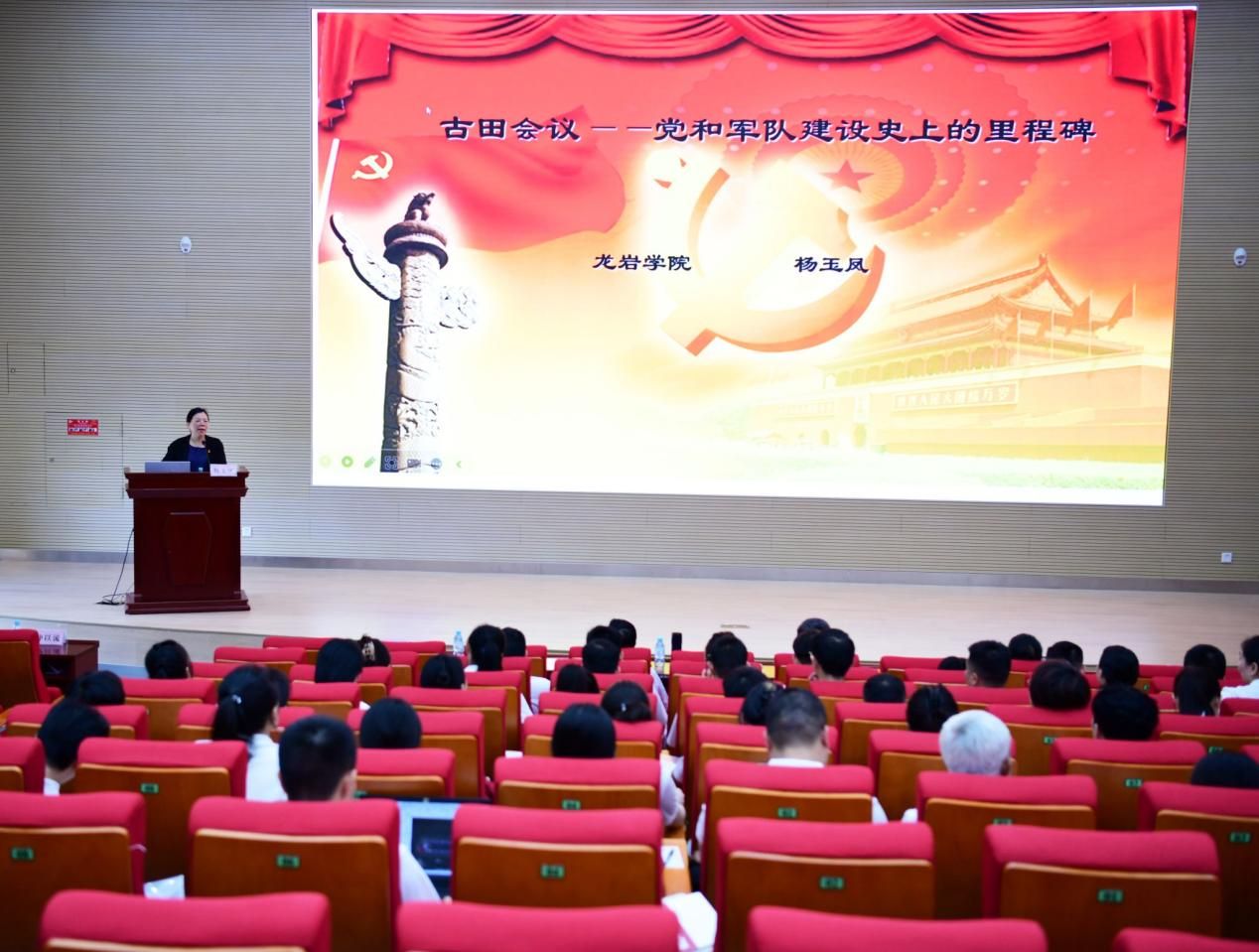 开班仪式结束后,全体学员认真聆听了龙岩学院杨玉凤教授所作的《古田会议——党和军队建设史上的里程碑》的专题讲座。杨教授围绕古田会议召开的历史背景背景、古田会议精神以及古田会议对思想政治教育的启示三个方面展开介绍,重点讲解了革命先辈的光辉事迹与古田会议深远的精神内涵。
