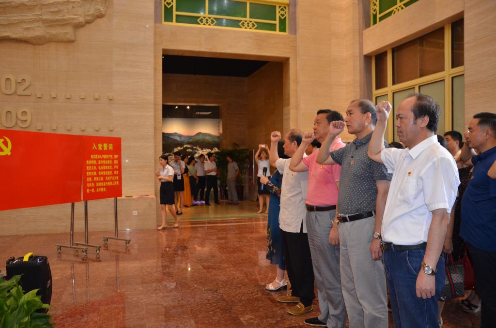 “我志愿加入中国共产党,拥护党的纲领,遵守党的章程,履行党员义务,执行党的决定,严守党的纪律,保守党的秘密,对党忠诚,积极工作,为共产主义奋斗终身,随时准备为党和人民牺牲一切,永不叛党。”全体人员在馆内大厅重温入党誓词,声音铿锵有力。