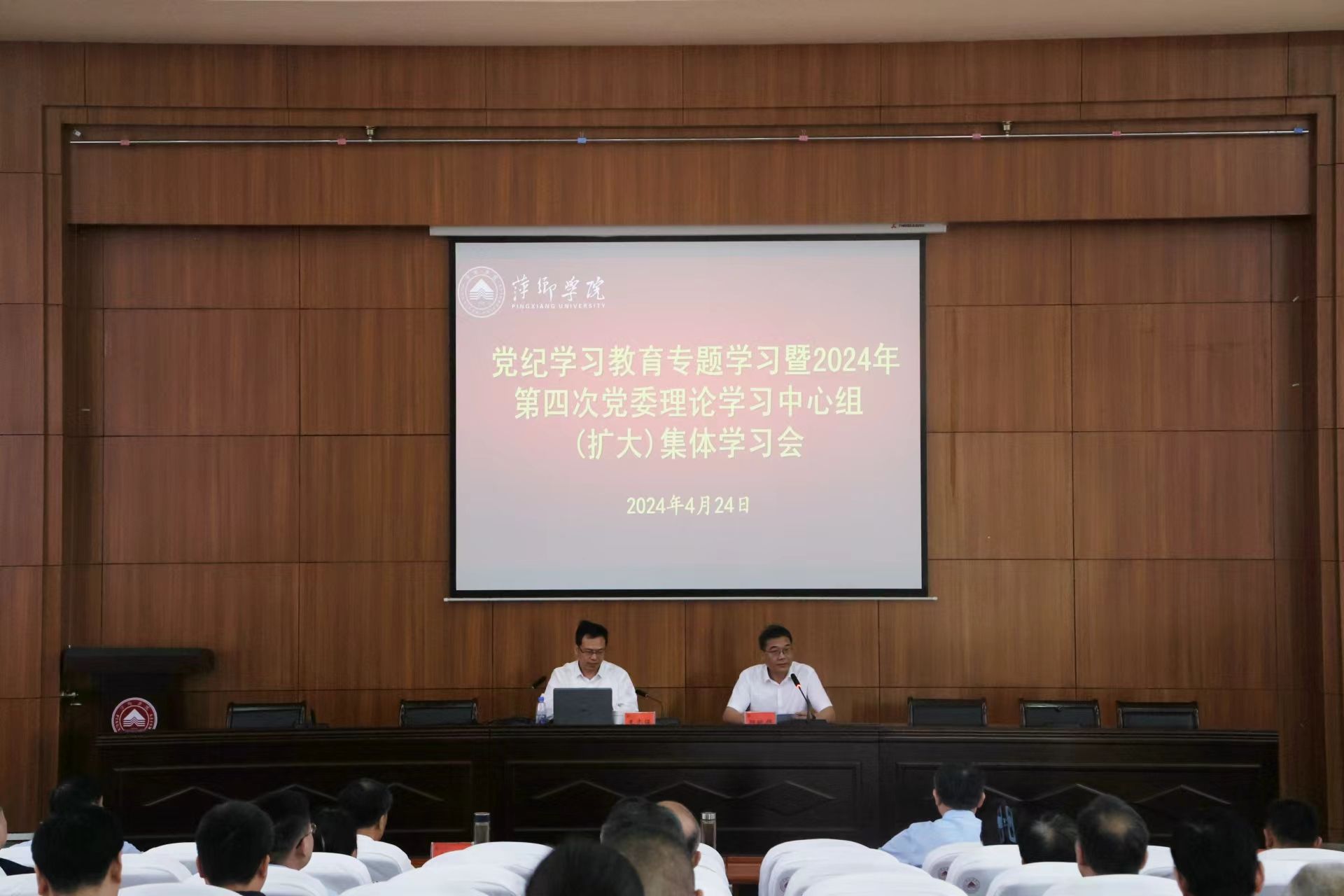 4月24日,我校在至善楼学术报告厅举行党纪学习教育暨党委理论学习中心组(扩大)集体学习会,深入学习贯彻习近平总书记关于党纪学习教育的重要讲话和重要指示精神,认真贯彻落实中央、省委有关会议和文件精神,专题学习《中国共产党纪律处分条例》。学习会邀请中共江西省委党校党史党建教研部副主任王志强教授作《中国共产党纪律处分条例》专题辅导报告。校党委书记邱晓辉主持报告会并讲话。校党委理论学习中心组全体成员,副处级及以上干部聆听报告。
