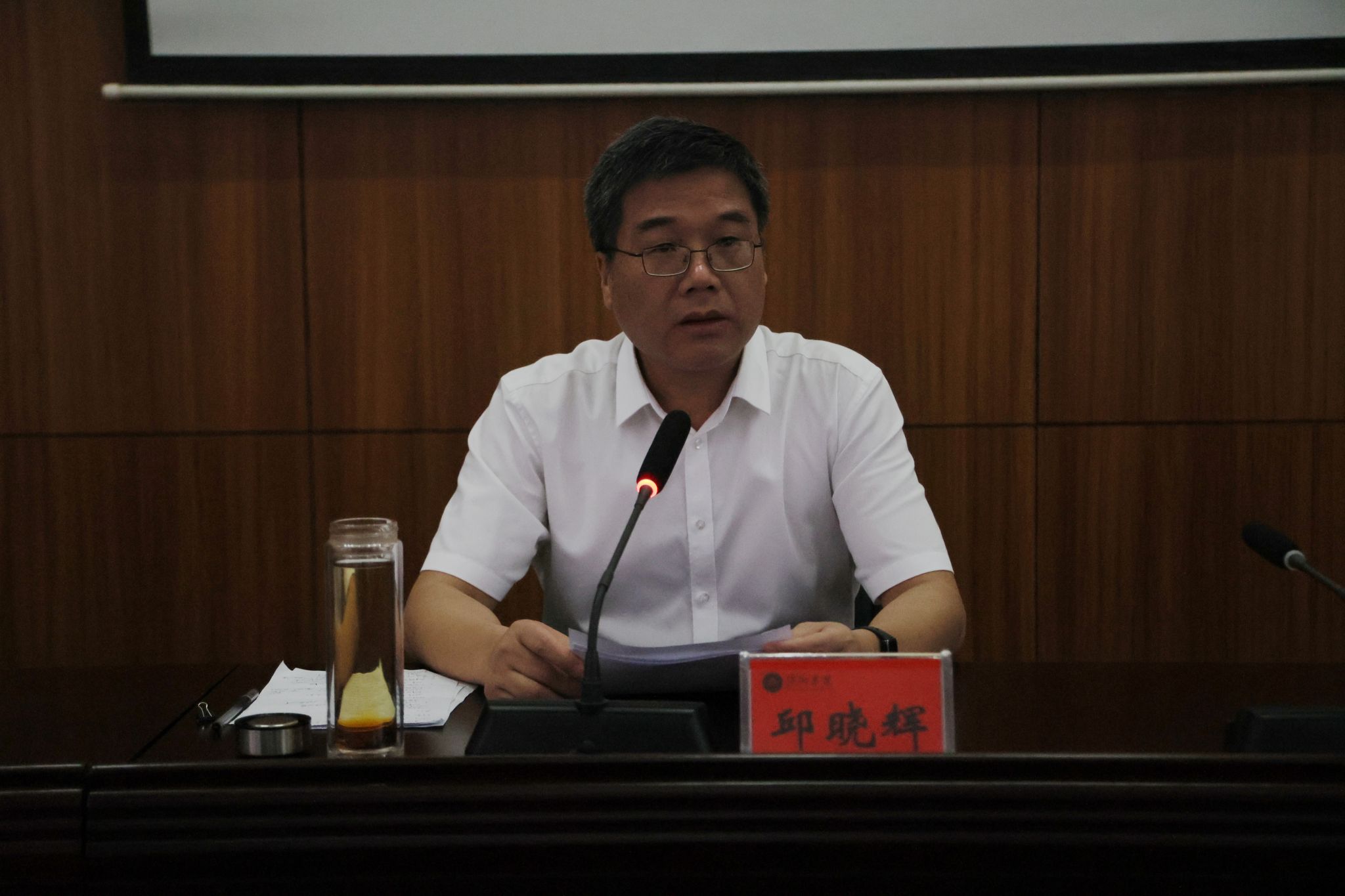 5月9日,我校党员领导干部党纪学习教育读书班暨党委理论学习中心组集体学习会在至善楼学术报告厅开班。校党委书记邱晓辉在开班仪式上作党纪学习教育专题辅导党课并讲话。他强调,要深入学习领会习近平总书记关于纪律建设的重要论述,充分认识开展党纪学习教育的重大意义,以实际行动深刻领悟“两个确立”的决定性意义、坚决做到“两个维护”。全校副处级以上领导干部参加会议。开班仪式由校党委委员、副校长陈永国主持。
